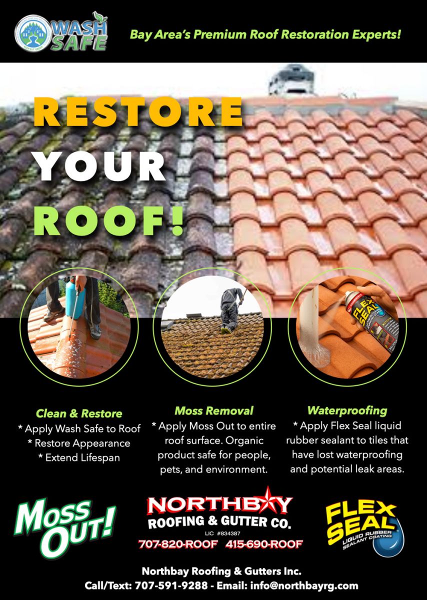 Warranty: Northbay Roofing & Gutter Co. guarantees against roof leaks for one year (interior damage resulting from existing leaks or future leaks not included).